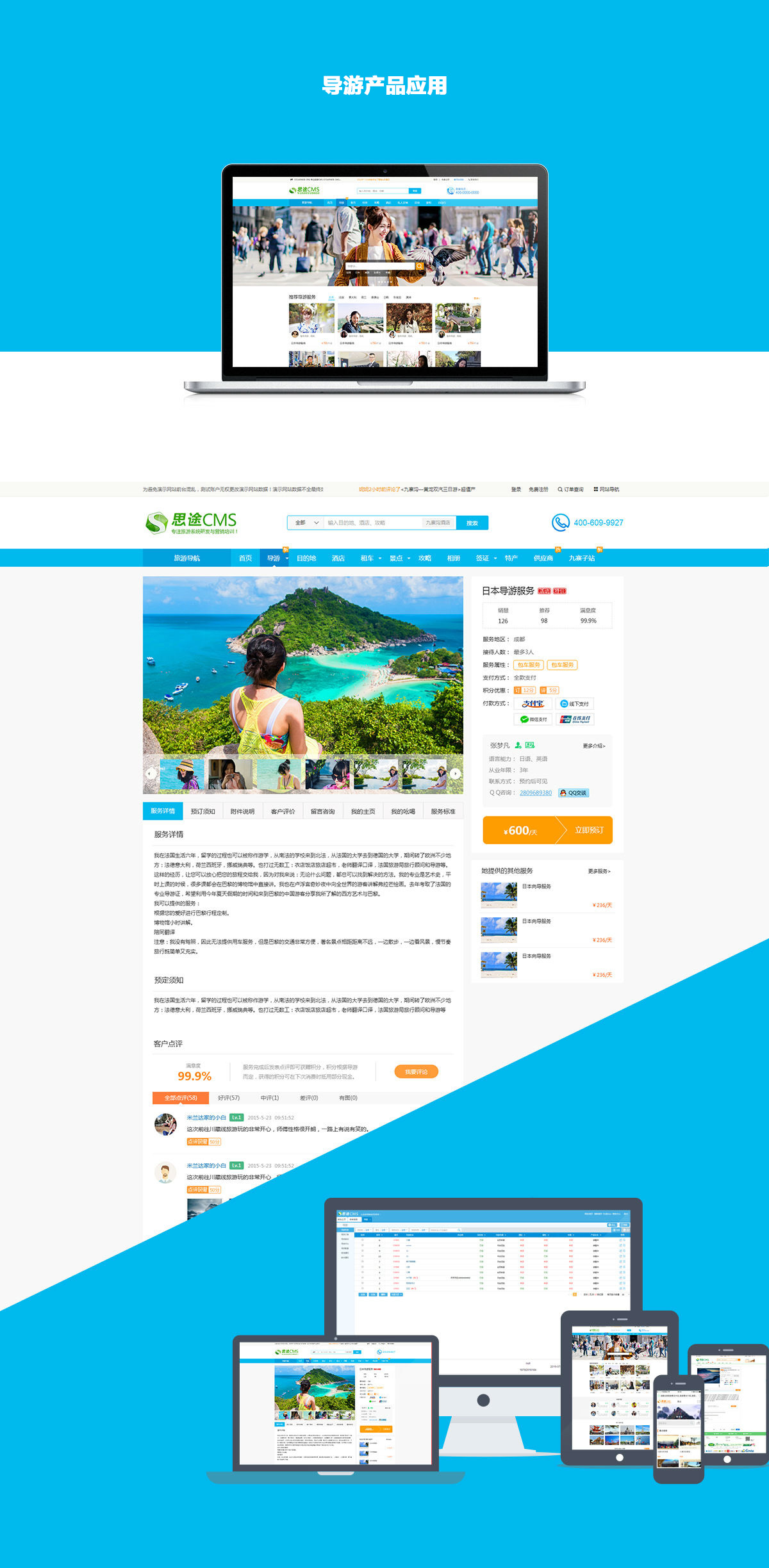7. 導游咨(zi)詢和評論:回復游客咨(zi)詢,游客對(dui)購買的產(chan)品(pin)服務進(jin)行評價;