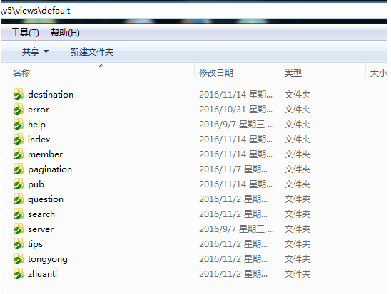 V6系統公共模板路徑: /v5/views/default/(前端的內置公共模板文件)