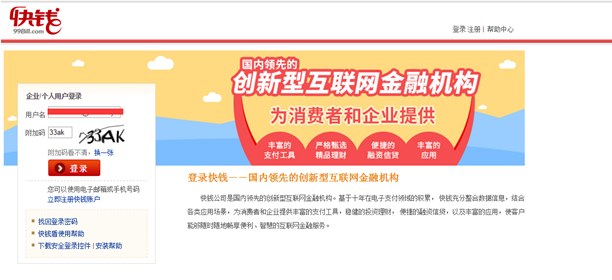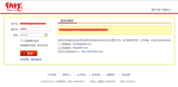 3、操作員選擇默認的admin賬號,輸入快錢賬戶密碼,點擊登錄。