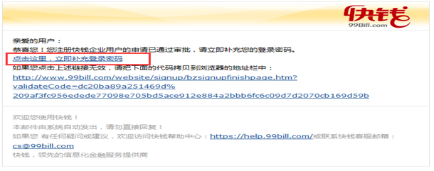 1、注冊成功后,注冊快錢賬戶的郵箱,會收到賬戶激活郵件;