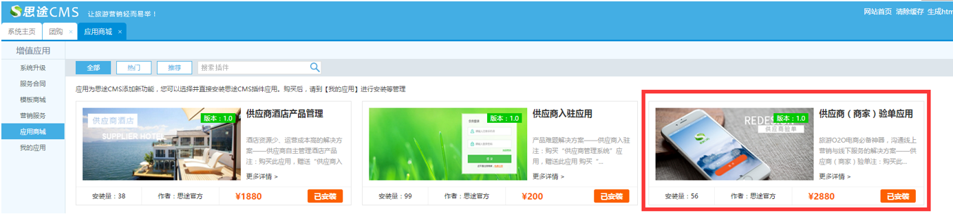PS:購買驗單贈送供應商入駐應用,但需要先行在應用商城進行購買