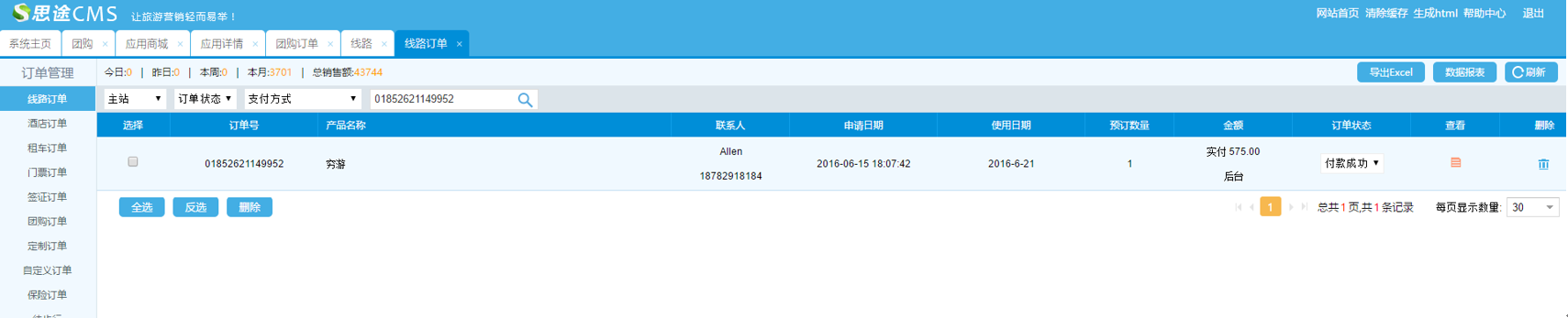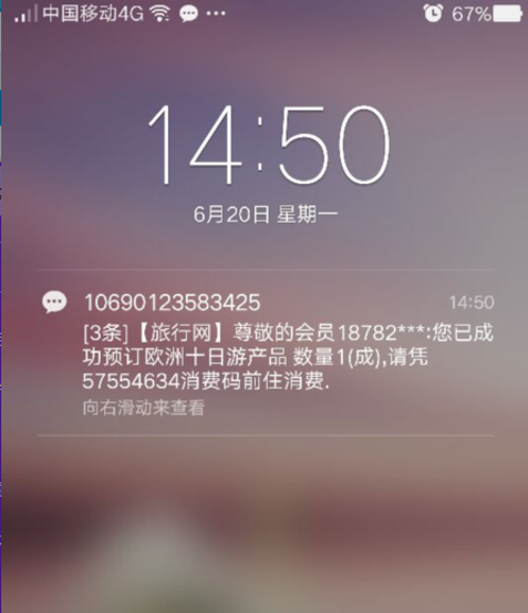 (1) 購買一個線路產品,狀態為付款成功,游客會收到消費碼短信