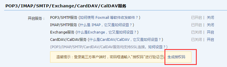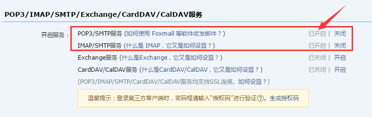 2、在 開啟服務 項,將“POP3/SMTP服務”中點擊 “開啟”