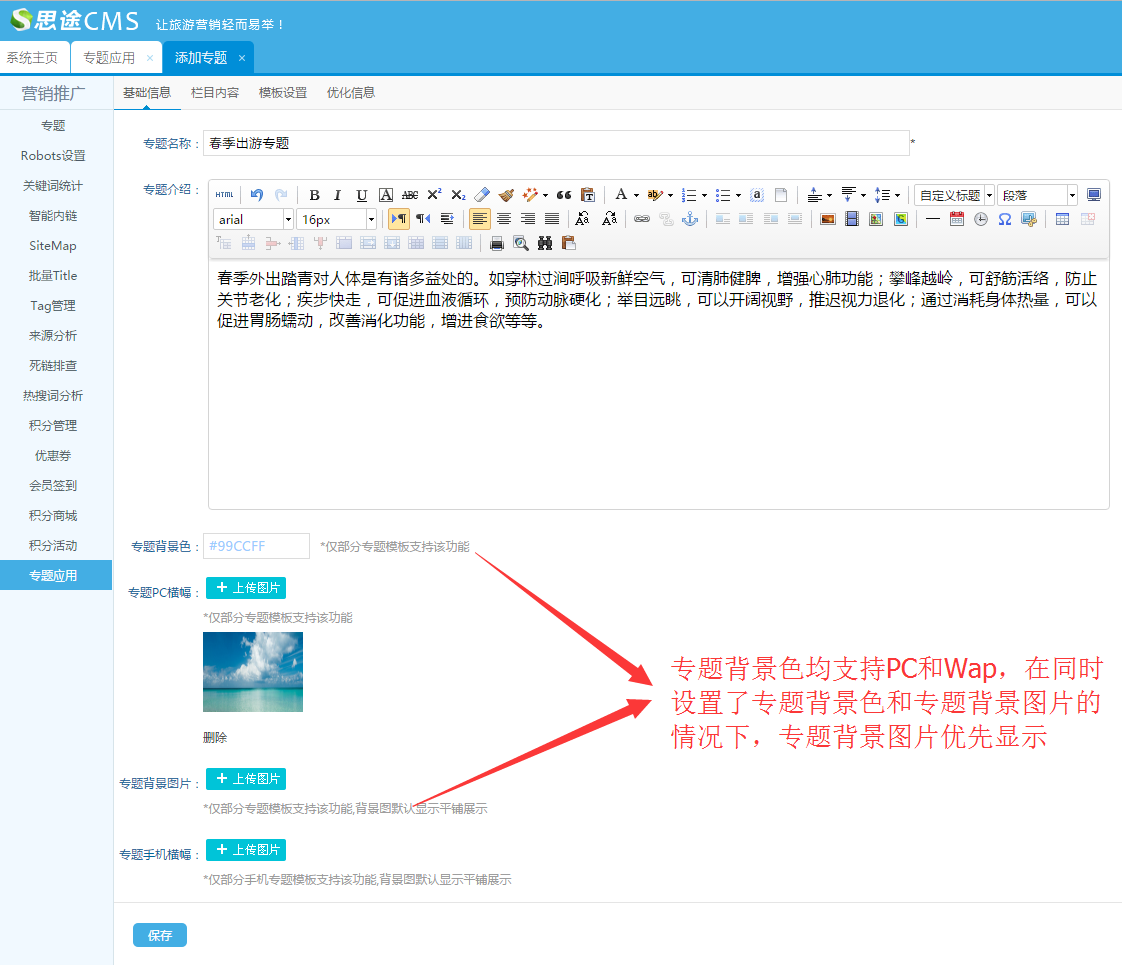 (一)專題營銷入口:文章類間接營銷--->專題應用
