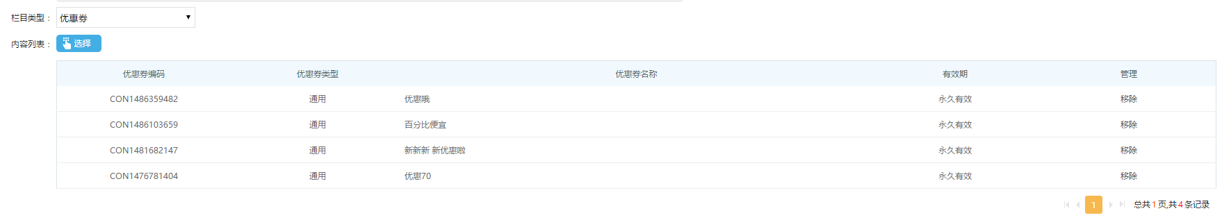 (1)添加優惠券欄目