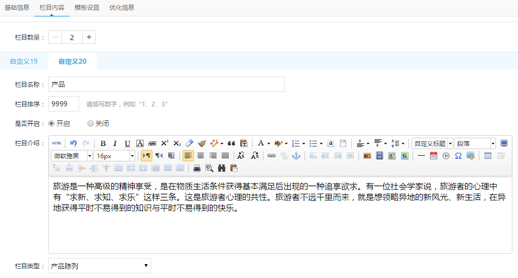 2、欄目內容:可添加優惠券和產品以及軟文顯示