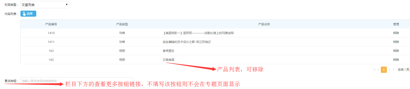 (2)欄目下設置了鏈接才會有查看更多按鈕出現