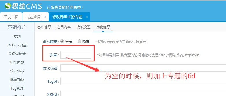 PS:專題沒有首頁,添加鏈接時需要將專題的tid也加上,如果自定義了專題的拼音域名則是加上專題的拼音域名