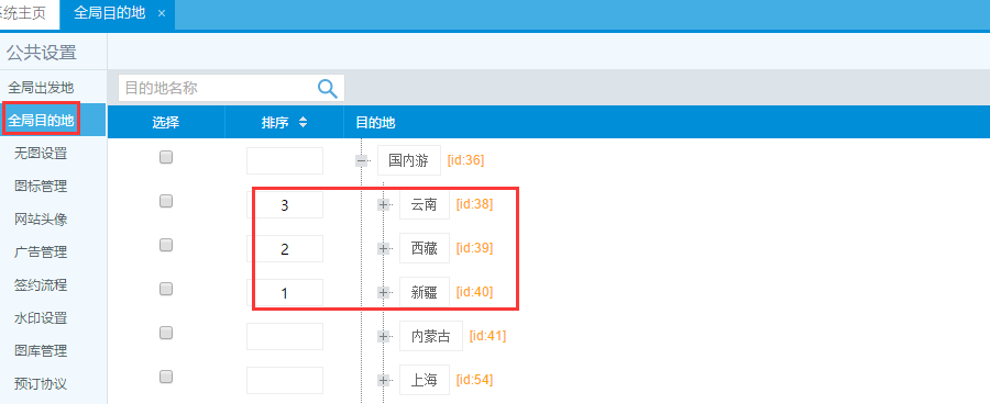 比如新疆數字最小,那么將排到最前面:
