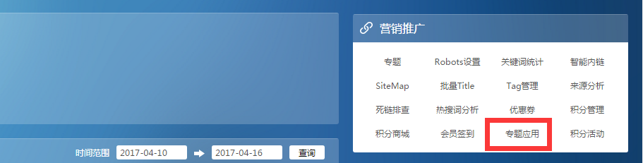 在:營銷推廣》專題應用》管理》欄目內容這個頁面最下方有一個更多按鈕的填寫框