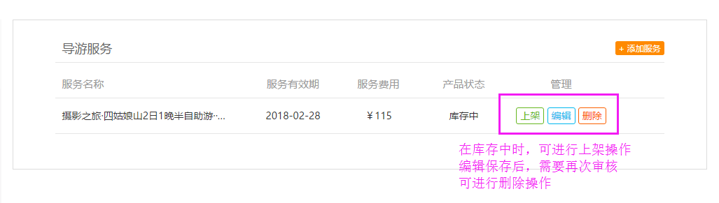 4、導游內容介紹:服務圖片、服務詳情、預訂須知為固定內容,可根據需要自定義添加