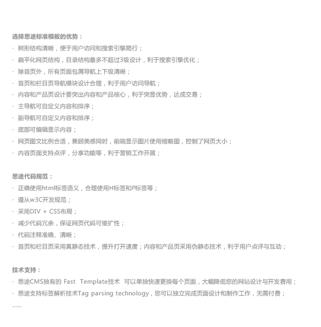 (1)思途CMS獨有的Fast Template技術 可以單獨快速更換每個頁面,大幅降低您的網站設計與開發費用;