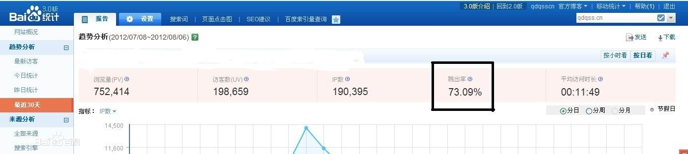意義:跳出率的高低一般可以衡量一個網站或頁面的重要指標,跳出率低的網站說明用戶的體驗很好,可以找到自己想要或者對自己有幫助的內容。反之則不然。