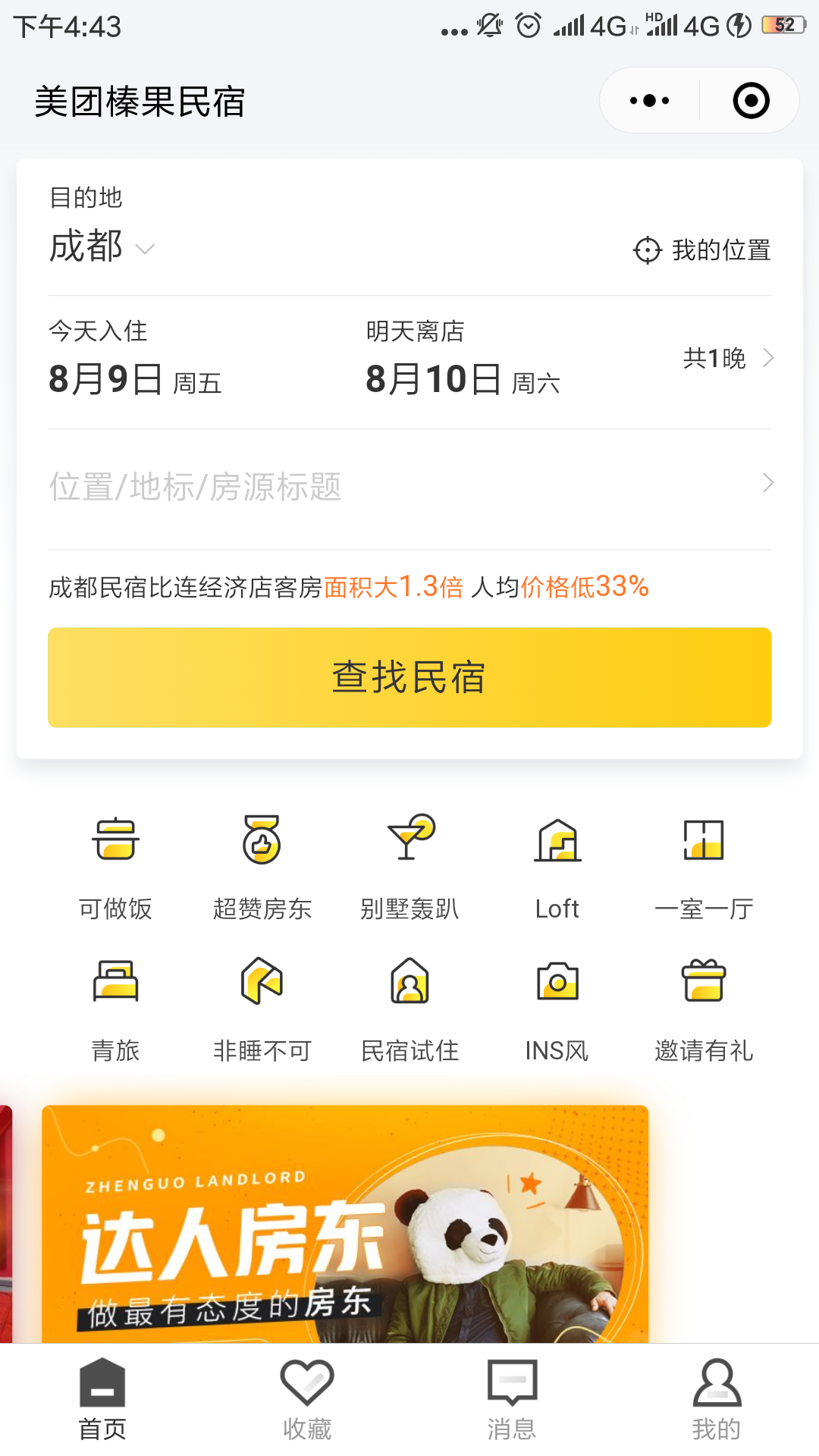 該平臺主打是特色民宿和短租房預訂,所以一打開頁面只有一個版塊:根據位置以及入住時間查找房源。然后在房源詳情頁可根據位置區域、周邊度假、家庭出游、商旅出行等多種情況進行選擇房源,同時在每一個城市都會有特價民宿推薦。