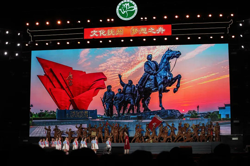 開幕式晚會共分三大篇章。首篇以《旌旗獵獵·紅色廣昌》為題,大型舞蹈《紅旗頌》、情景舞臺劇《廣昌路上旌旗紅》,以及系列紅歌《映山紅》《英雄贊歌》等接續上演,恢弘再現了廣昌那段波瀾壯闊、激情燃燒的革命歲月。隨后的《紅花爛漫·清秀蓮鄉》《宏圖大展·盛世廣昌》兩大篇章,更是以優美的舞蹈和熱辣的歌聲,生動呈現了廣昌生機盎然的精神風貌和蓬勃向上的發展態勢。
