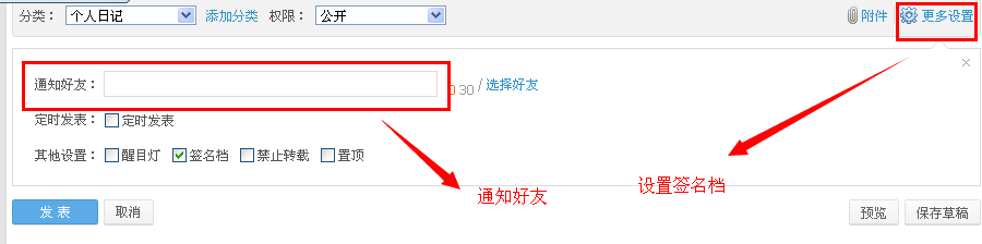 文字編輯好的時候點擊更多的設置,如下圖所示,進行設設置簽名檔,這樣在顧客看完文章的時候又給品牌再次進行一次曝光的機會。