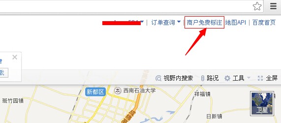 打開百度地圖//map.baidu.com/,登陸百度賬號,在右上角有一個商家免費標注,點擊進入!