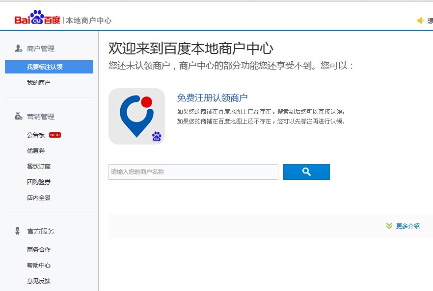 下一步//nlbc.baidu.com/lbs-lbc/index.action?from=maptop在下圖輸入框內輸入自己商鋪的名字,如果能搜得到,直接認領即可,并上傳相關資質,如果查詢不到就要先到地圖中標注店鋪位置,然后認領