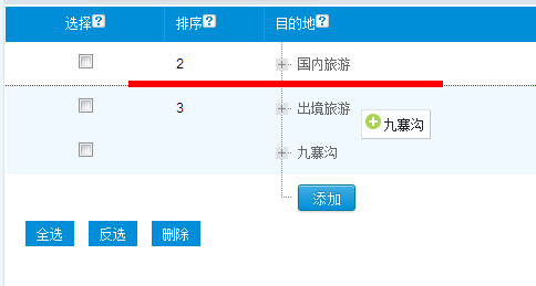 通過拖動九寨溝這一欄,輕松的移動至出境游的上面一欄,可以拖動至出境游的下一級哦!