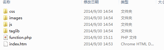 其中,CSS為當前模板使用的CSS樣式,images存儲相應圖片,js存儲javascript文件,taglib存儲當前模板可使用的標簽,function.php里可定義當前模板使用的函數公共文件,index.htm為模板文件(注意:index.htm為固定格式不能更改).