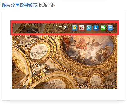 c、圖片分享效果也可以設置相應的按鈕大小、分享順序、按鈕浮層等:
