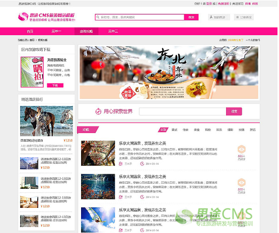 下面我們來看看思途CMS的這套度假主題玫紅色列表頁模板設計方案。如圖二所示: