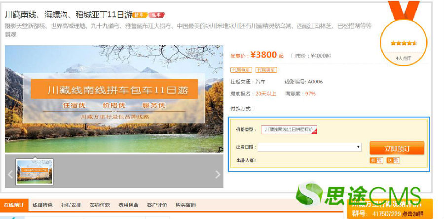 比如在購物的時候我們會發現,不管是將購物車放在頁面頂部還是在邊欄設置預訂模塊,他們最終都是希望確保在客戶決定購買時能及時響應,最后得到一個結果。站長肯定都不希望用戶瀏覽網站之后就離開了,所以當用戶想要購買時,能夠很快找到預訂窗口,這方便思途就做的很好,不管線路頁面還是租車頁面,用戶都能很方便的找到預訂窗口。