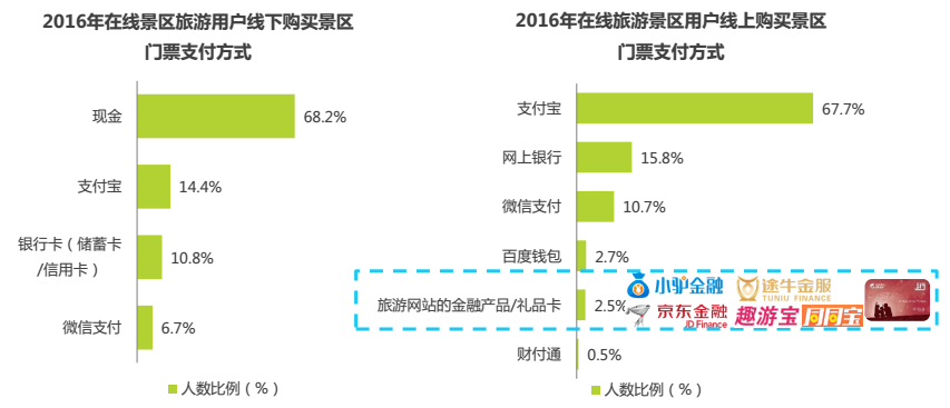 現金和支付寶是景區旅游用戶線下/線上購買門票主要方式