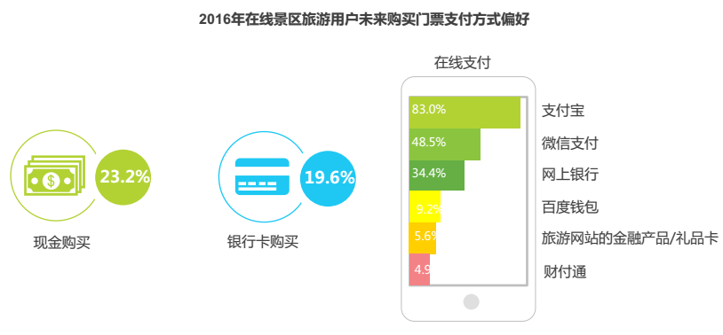 83.0%景區旅游用戶購買門票偏好支付寶支付