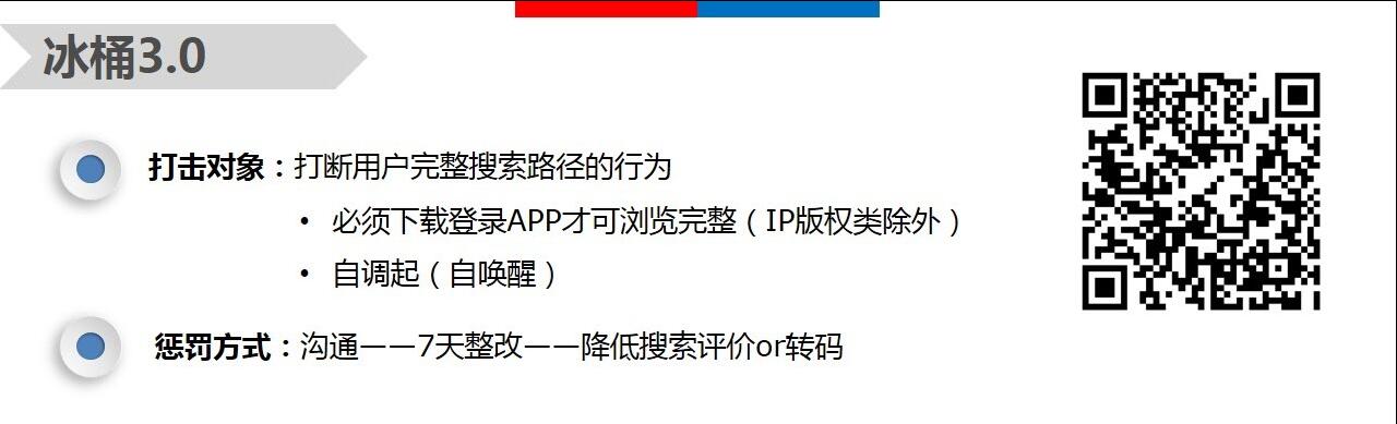 秉承用戶至上的原則,百度移動搜索不斷更新系統、升級算法,一切都為了讓用戶擁有更順暢的搜索體驗。百度移動搜索升級冰桶算法3.0,3.0版本,嚴厲打擊在百度移動搜索中,打斷用戶完整搜索路徑的調起行為。