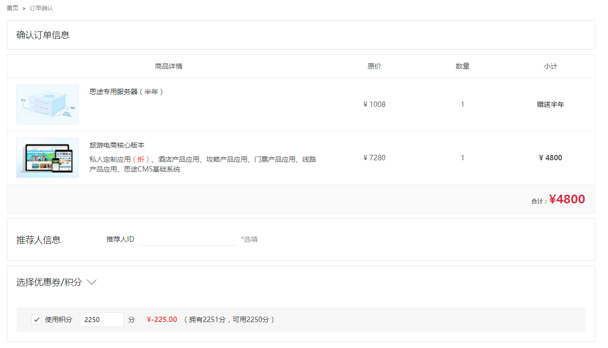 積分抵扣訂單