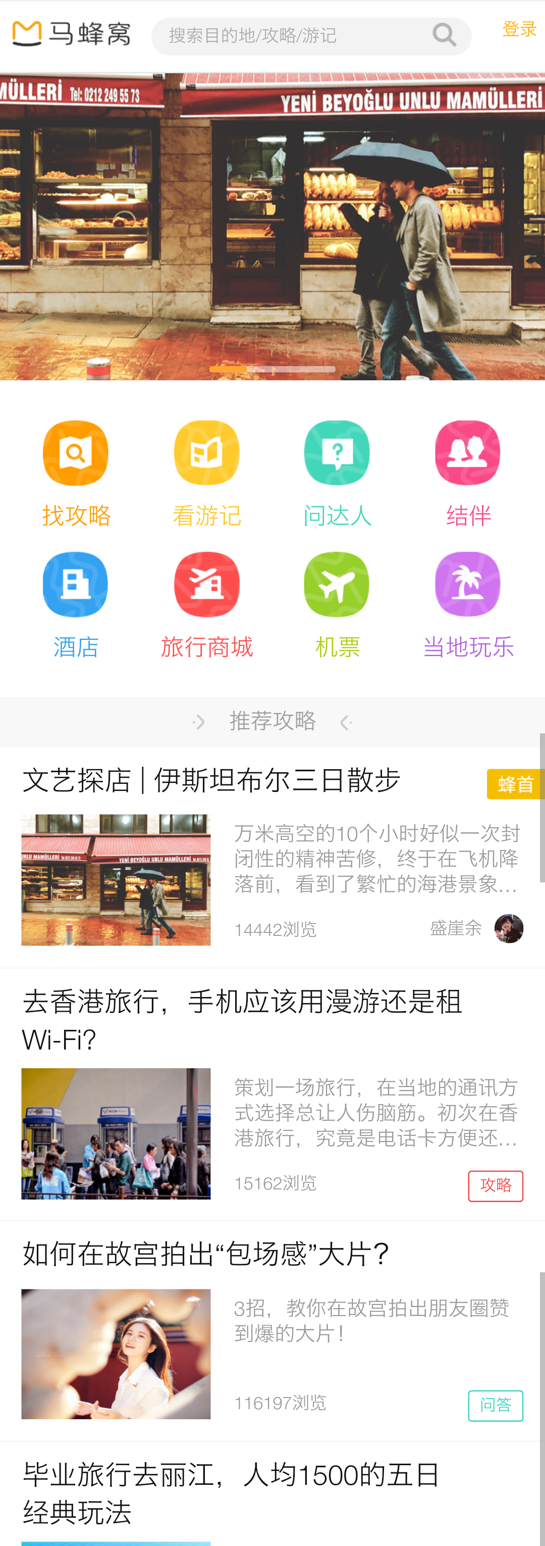 上馬蜂窩的人,大部分都是查游記、看攻略的,馬蜂窩導航,一目了然,重點突出,非常的有針對性,起到了很好的引導作用。