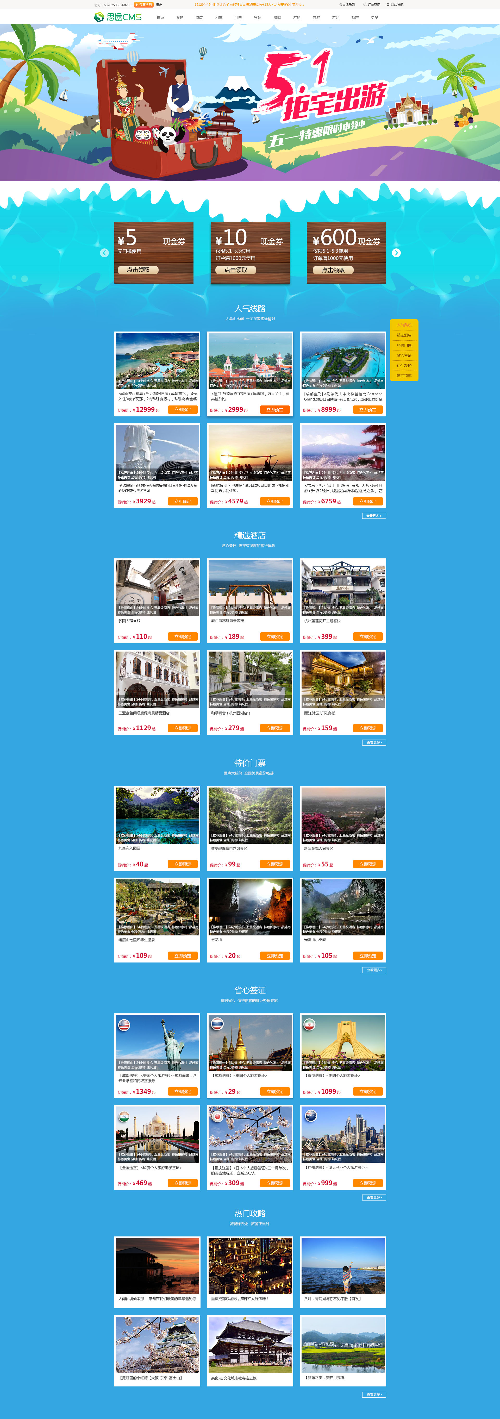夏天,是人們出游的高峰期,出游第一件事,當然是打開旅游網站。不過,現在的旅游網站花樣別出,沒有自身特色,長期保持一個單調樣式,怎么能吸引游客們挑剔的眼光呢?所以,要想在這個夏天打一場漂亮的勝仗,還得有“靚衣”加身才行。為了幫助大家更好的凸顯假日特色,思途就為大家準備了幾款清新一夏的夏日模板。