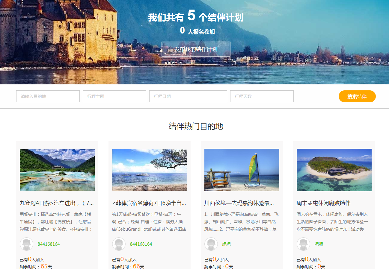 1、通過發布結伴計劃和參加結伴計劃,給游客提供結伴旅行的信息平臺。