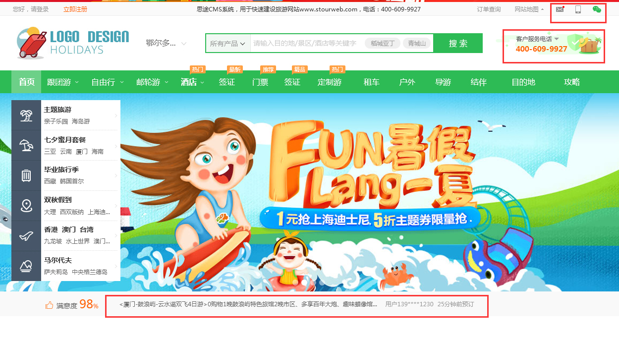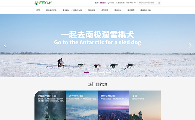 而多產品類型的旅游網站(中大型旅游網站、綜合門戶旅游網站等),通常需要展示豐富的產品種類,這就需要功能更全面的網站首頁了。本次思途精心打造的綜合版門戶首頁模板,分類多樣,層次清晰,還增添了更為飽滿的旅游場景圖和攻略點評,有利于全面地向游客傳遞我們的產品信息。