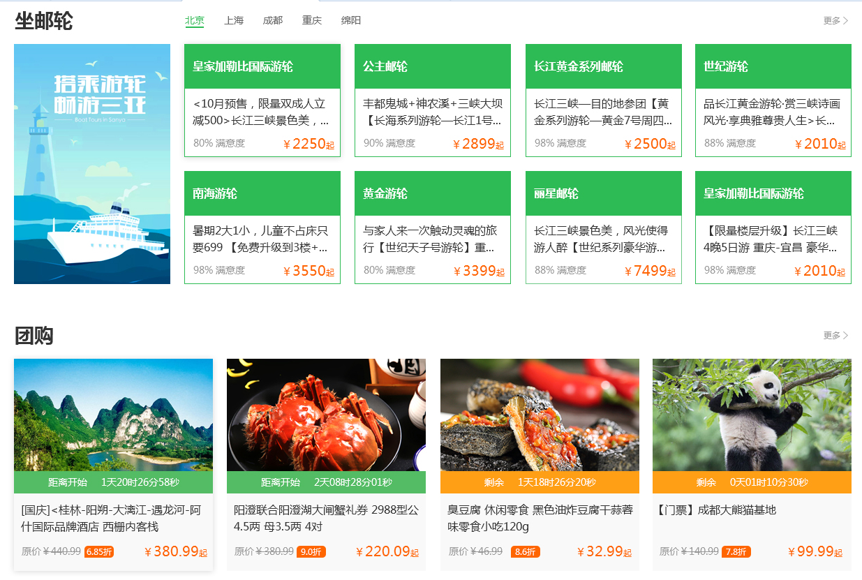 適用于產品線較為單一、產品種類較少的旅游網站(如私人訂制、單產品等),我們通常會在頂部Banner配簡潔高清的大圖,凸顯網站高端的定位。同時,除了頂部,網站首頁都主要以圖片的形式呈現產品,正是為了利用強烈的視覺沖擊力,激發用戶的購買欲望。
