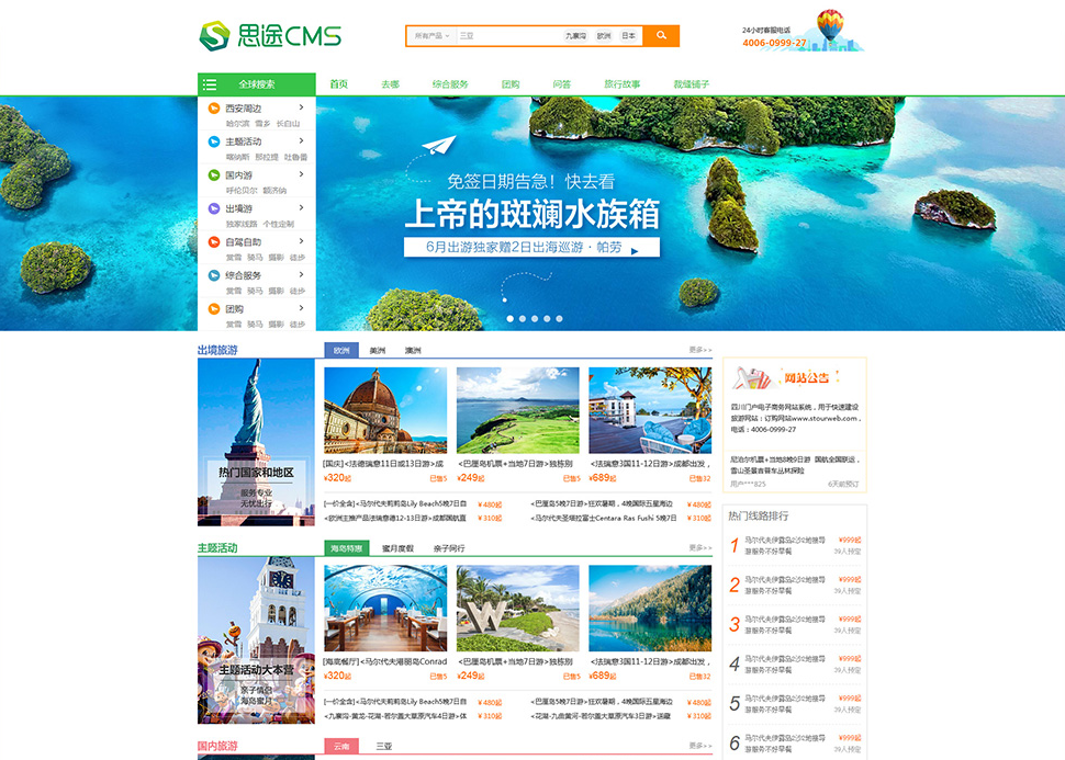 運營旅游網站,就像追求對象,要吸引對方,第一印象總是很重要。競爭者這么多,你拿什么和別人比呢?自然就得準備好自己的“吸睛”法寶了。游客進入一個旅游網站,第一眼看到的是什么,往往就決定了他對網站的整體印象。而精美又獨特的門戶首頁,往往更能給人深刻的印象。但是,要親力設計出完美的旅游門戶首頁可沒那么容易。這個時候,選擇一套合適的網站首頁模板就輕松了許多。今天,思途小編就來為大家分析一下,什么樣的旅游網站首頁模板最適合你。