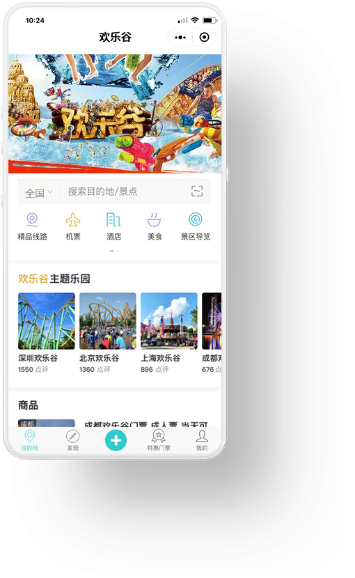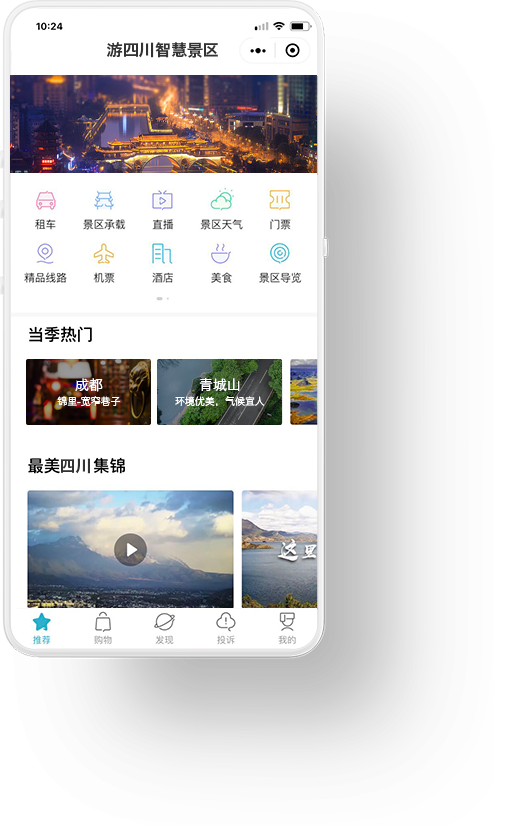圍繞“吃、住、行、游、娛、購”等旅游要素提供景區一站式服務平臺,游客可直接在小程序完成周邊游玩、酒店、餐飲、特產等旅游產品查詢、預訂及購買。 貫穿”吃、喝、玩、樂“等多種旅游場景幫助景區針對性開展營銷推廣,有效吸引精準客源,樹立景區品牌。