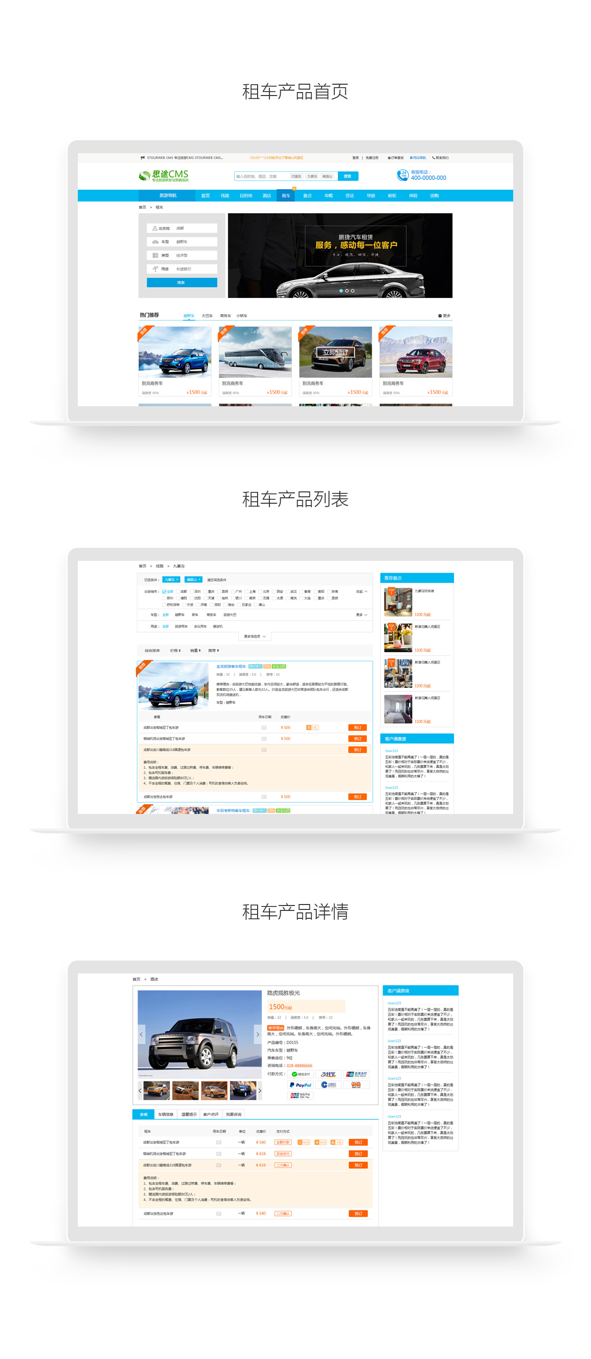 B2C平臺租車產品應用是針對思途CMS的擴展模塊。安裝后可以在思途CMS中擴展一個租車產品管理模塊,幫助平臺管理員進行租車產品的發布、管理、銷售;同時,前臺會員可利用功能模塊進行車輛產品預定。