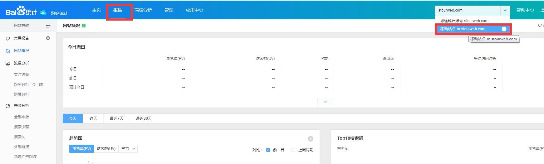 保存后,進入報告,選擇移動站點,就可以查看移動站點的相關流量數據。