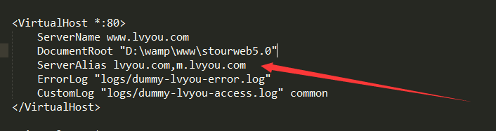 第二步:在綁定主域名的地方綁定手機域名或者添加一條指向,下面以apache為例: