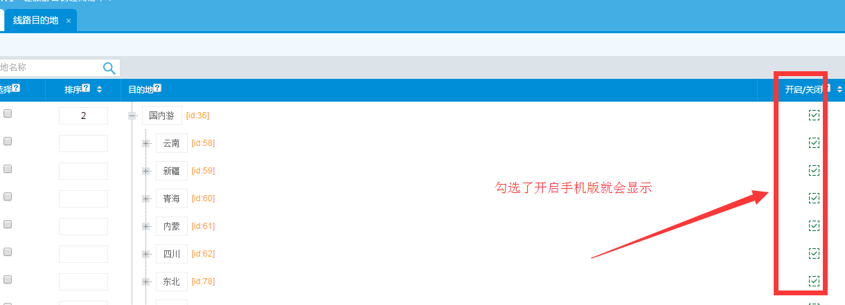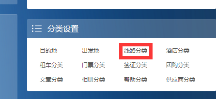 后臺首頁》分類設置》線路分類》線路目的地