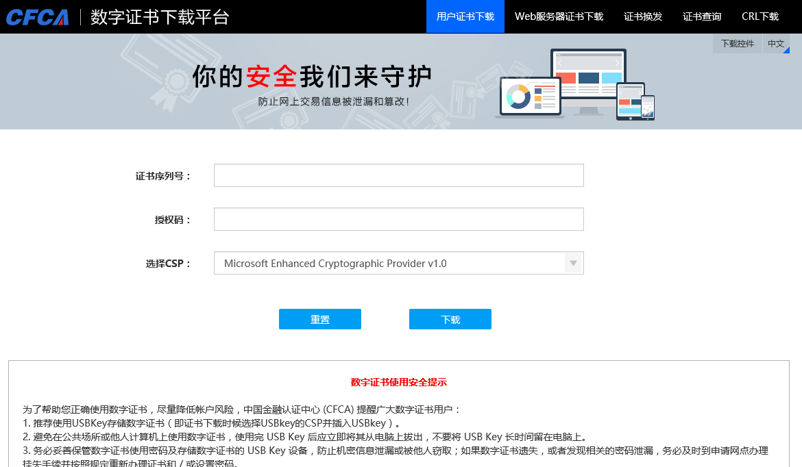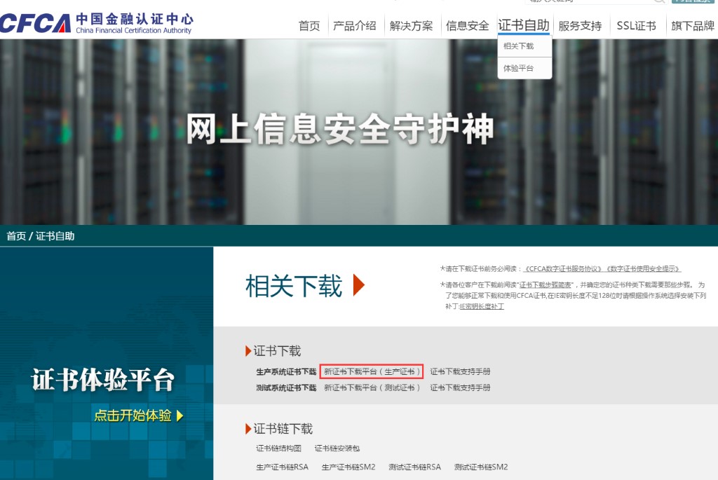 1、進入中國金融認證中心:,找到“證書下載”,點擊下載;