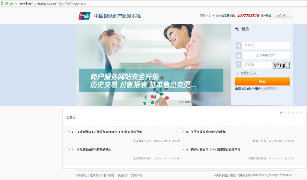 3、上傳下載的數字證書,需要上傳兩個地方:1、銀聯商戶平臺;2、思途CMS。進入銀聯商戶平臺()上傳下載的證書(具體不清楚的咨詢銀聯客服)