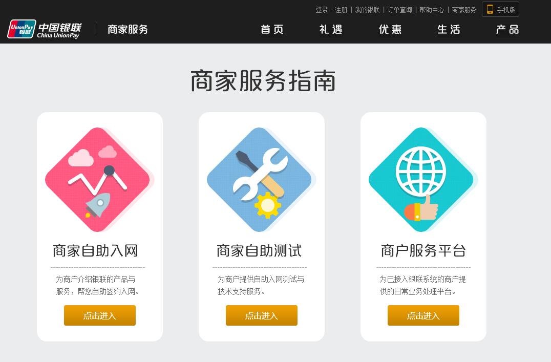 1、進入商戶服務電子化入網平臺()申請商戶賬號,點擊上面的“注冊或者登陸”;
