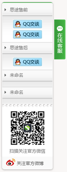 (3)客戶樣式3:支持QQ客服設置顯示,微信掃碼,點擊進入官方微博