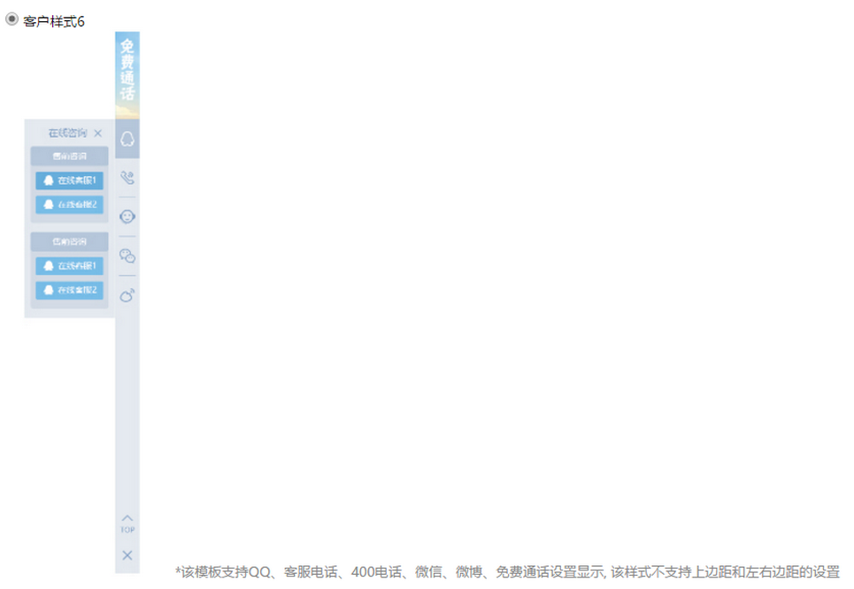 注:在線客服樣式5,在線客服樣式6,在線客服樣式7,在線客服樣式8不支持設置左右邊距