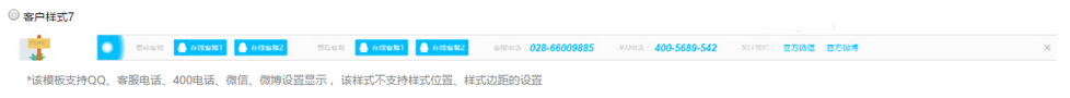 (7)客戶樣式7:支持QQ客服設置顯示、客服電話、400電話、微信二維碼、官方微博