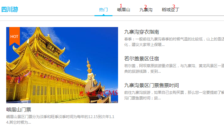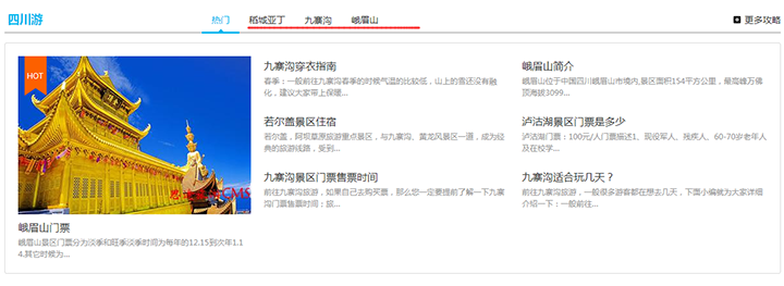 欄目大分類下的子目的地區域,是在后臺的文章目的地里設置。