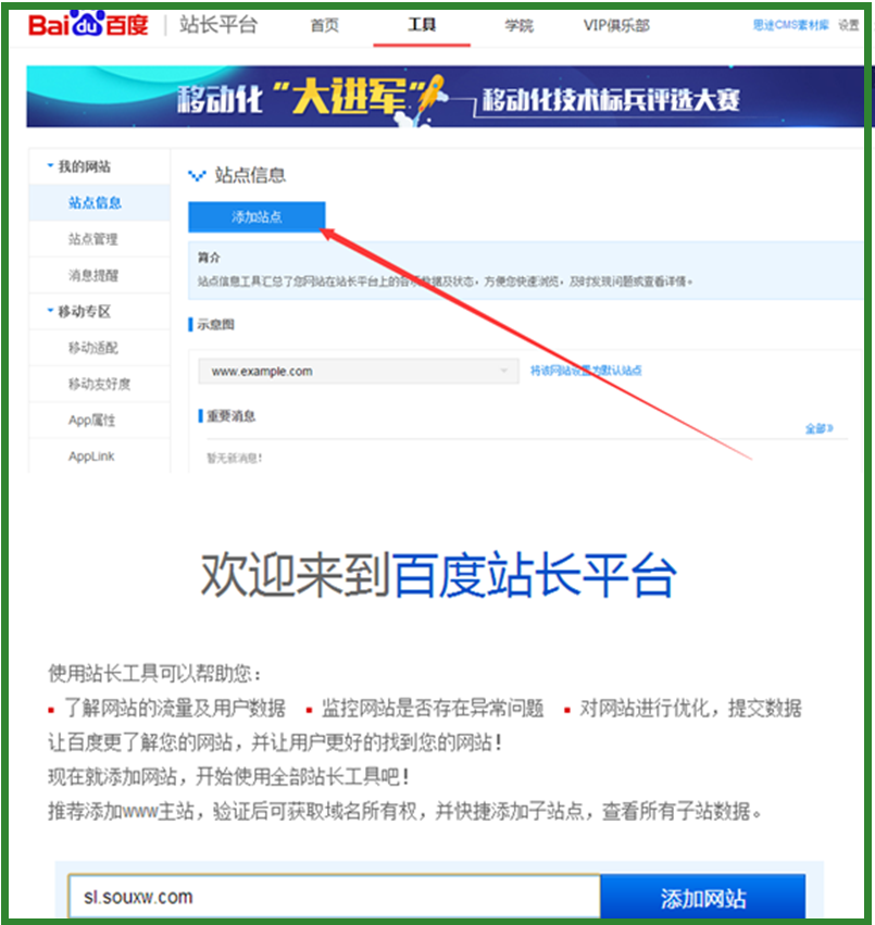 第二步:登陸后,點擊添加站點